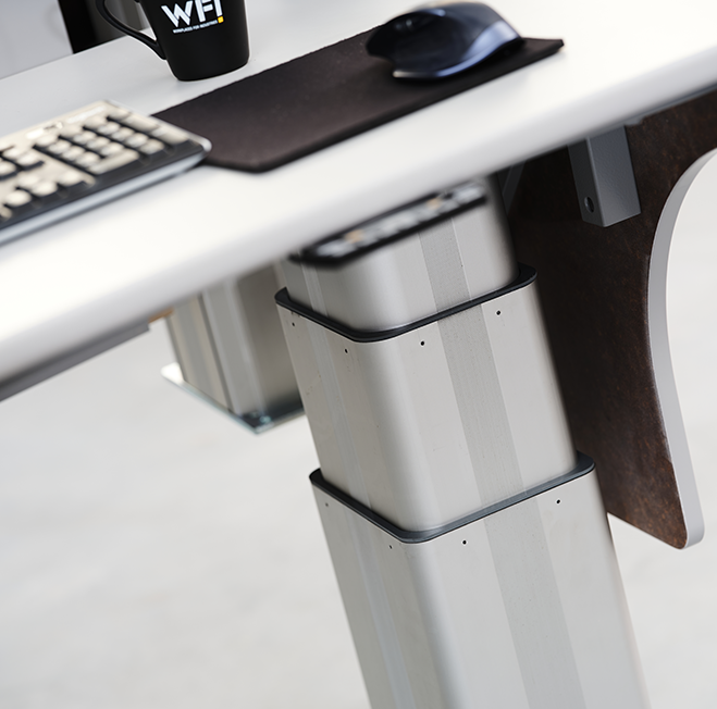 Eines der wichtigsten Dinge für uns war die Möglichkeit, die Arbeitsplätze höhenverstellbar zu machen. In vielen Arbeitsbereichen muss der Mitarbeiter ständig zwischen einer stehenden und einer sitzenden Position wechseln, und daher war dies eine Schlüsselanforderung von unserer Seite. Die Arbeitstische, die wir zusammen mit WFI implementiert haben, lassen sich leicht einstellen, was sowohl die Ergonomie als auch die Flexibilität erhöht hat.