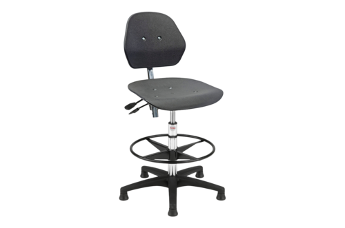 Arbeitshocker mit extrem strapazierfähiger Sitzfläche und Rückenlehne aus formgepresstem, schlagfestem Kunststoff. Neigbare Sitzfläche und Rückenlehne sowie verstellbare Höhe der Rückenlehne. Verstellbarer Fußring. Fußkreuz mit Gleitfüßen. Rollen sind als Zubehör erhältlich. Höhenverstellung 520-780 mm.
