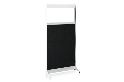 Abschirmwand für Arbeitsplätze in Industrie- und Lagerumgebungen. Trennt zwischen verschiedenen Räumen und hat gleichzeitig eine schalldämpfende Funktion, eine Kombination, die Möglichkeiten für eine verbesserte Ergonomie schafft und in mehrfacher Hinsicht dazu beiträgt. Die Trennwand hat einen Abstand von 900 mm zwischen den Säulen und kann daher mit unserem Standardzubehör wie Regalen, Paneelen und Rückleisten ergänzt werden, um in derselben Lösung Stauraum zu schaffen.