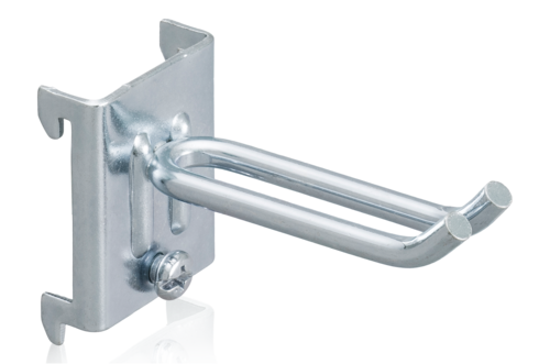 Doppelter Werkzeughalter für Lochrasterplatten. Passend für Rasterlochmaß 9x9 mm und Lochabstand c/c 38 mm. Verkauf im 5er-Pack.Spezifikation - Doppelter Werkzeughalter 64x7x5 mm 5er-Pack