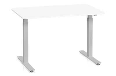 Sowohl unsere manuellen als auch unsere motorisierten Arbeitstische verfügen über einen Unterbau und ein Gestell mit Details in Dunkelgrau NCS 6502-B.