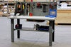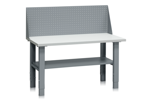 Eine stabile und kompakte Werkbank, die sich bestens für Montagearbeiten und für den Einsatz in der Werkstatt eignet. Die 40 mm dicke Tischplatte aus Laminat macht den Tisch sehr stabil und leistungsstark und bietet eine harte und kratzfeste Oberfläche mit guter Beständigkeit gegen Flüssigkeiten und Chemikalien hat. Die Lochrasterwand wird an der Rückkante und an den Seiten verschraubt, um eine anpassungsfähige und flexible Werkzeugaufhängung zu schaffen. Alle unsere Werkzeughaken sind mit der Lochrasterplatte verwendenbar. Der Tisch wird mit einer unteren Ablage aus lackiertem Metall für zusätzlichen Stauraum geliefert, die Ablage ist 435 mm tief. Der Tisch hat manuell höhenverstellbare Beine aus Stahl und hat eine maximale Lastkapazität von insgesamt 500 kg. Minimale Höhe 745 mm, maximale Höhe 1015 mm.