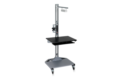Wir haben eine große Auswahl an mobilen und kompakten Arbeitsstationen, die für leichtere Arbeiten oder beispielsweise als IT-Arbeitsplatz geeignet sind. Diese finden Sie sowohl als manuell als auch als elektrisch höhenverstellbare Versionen. Die Basisversion der Arbeitsstation ist mit einer höhenverstellbaren Tischplatte und einer Doppellochsäule für weiteres Zubehör ausgestattet. Als weitere Ausrüstung finden Sie Beleuchtung, Schubladen und Papierhalter sowie Tastaturablagen und Etikettenhaltern. Suchen Sie nach einer vollständig ausgerüsteten Station? Wir haben eine elektrisch höhenverstellbare Arbeitsstation mit Flachbildschirmhalterung und Schwenkarm, Tastaturablage und unterer Ablage.