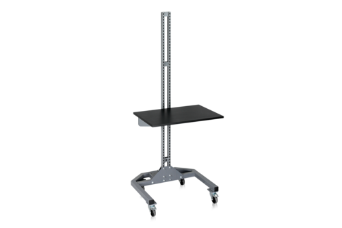 Flexibler Arbeitsplatz für leichtere Arbeiten in der Industrie, im Lager und im Büro. Eignet sich hervorragend beispielsweise als EDV-Station oder Arbeitsfläche für einfachere Montagearbeiten. Der Arbeitsplatz ist manuell höhenverstellbar und mit einer Melamin-Tischplatte sowie vier Lenkrollen, davon zwei mit Bremsen (Raddurchmesser 100 mm), ausgestattet. Dank der Tatsache, dass die Konstruktion zusätzlich zwei verschweißte Lochsäulen umfasst, ist die Montage zahlreicher Standardzubehörteile wie Gelenkarme, Bildschirmhalter und Ablageflächen möglich. Tragkraft 50 kg verteiltes Gewicht.