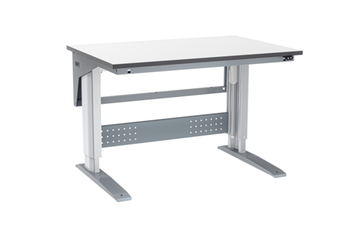 Elektrisch höhenverstellbarer Arbeitstisch für den Einsatz im Industrie- und Logistikbereich. Der Arbeitstisch ist mit zwei Elektromotoren ausgestattet für eine sanfte, geräuschlose und stufenlose Höhenverstellung. Verfahrgeschwindigkeit 15 mm/s ohne Belastung. Die Höhe lässt sich einfach mit einer Tischbedieneinheit einstellen, die an einer beliebigen Stelle an der Tischplatte montiert wird. Die minimale Höhe beträgt 700 mm und die maximale Höhe 1150 mm. Das Tischgestell besteht aus pulverlackiertem Stahl, der sowohl korrosions- als auch verschleißfest ist und eine schmutzabweisend Oberfläche hat. Netzteil 230 V/50 Hz. Ein stabiler Arbeitstisch mit einer Belastbarkeit von 300 kg verteiltem Gewicht.