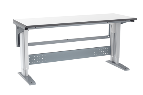 Elektrisch höhenverstellbarer Arbeitstisch für den Einsatz im Industrie- und Logistikbereich. Der Arbeitstisch ist mit zwei Elektromotoren ausgestattet für eine sanfte, geräuschlose und stufenlose Höhenverstellung. Verfahrgeschwindigkeit 10 mm/sec ohne Belastung. Die Höhe lässt sich einfach mit einer Tischbedieneinheit einstellen, die an einer beliebigen Stelle an der Tischplatte montiert wird. Die minimale Höhe beträgt 700 mm und die maximale Höhe 1150 mm. Das Tischgestell besteht aus pulverlackiertem Stahl, der sowohl korrosions- als auch verschleißfest ist und eine schmutzabweisend Oberfläche hat. Netzteil 230 V/50 Hz. Ein stabiler Arbeitstisch mit einer Belastbarkeit von 400 kg verteiltem Gewicht.