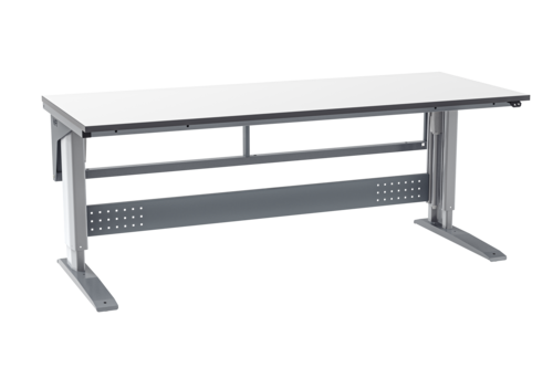 Elektrisch höhenverstellbarer Arbeitstisch für den Einsatz im Industrie- und Logistikbereich. Der Arbeitstisch ist mit zwei Elektromotoren ausgestattet für eine sanfte, geräuschlose und stufenlose Höhenverstellung. Verfahrgeschwindigkeit 10 mm/sec ohne Belastung. Die Höhe lässt sich einfach mit einer Tischbedieneinheit einstellen, die an einer beliebigen Stelle an der Tischplatte montiert wird. Die minimale Höhe beträgt 700 mm und die maximale Höhe 1150 mm. Das Tischgestell besteht aus pulverlackiertem Stahl, der sowohl korrosions- als auch verschleißfest ist und eine schmutzabweisend Oberfläche hat. Netzteil 230 V/50 Hz. Ein stabiler Arbeitstisch mit einer Belastbarkeit von 400 kg verteiltem Gewicht.