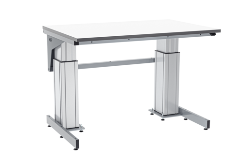 Elektrisch höhenverstellbarer Arbeitstisch für schwerere Werkstattarbeiten. Der Arbeitstisch ist elektrisch verstellbar und verfügt über eine sanfte, leise und stufenlose Höhenverstellung. Verfahrgeschwindigkeit von 6,5 mm/sec unbelastet. Die Höhe lässt sich leicht mit einem Tischbedienelement einstellen. Die Mindesthöhe einschließlich Tischplatte beträgt 660 mm und die maximale Höhe 1060 mm. Der Arbeitstisch mit Stellfüßen ausgestattet, die individuell für einen stabilen Stand an unebene Industrieböden angepasst werden können. Netzteil 230 V/50 Hz. Ein stabiler Tisch mit einer Belastbarkeit von 600 kg verteiltem Gewicht.