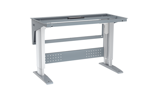 Elektrisch höhenverstellbares Tischgestell für den Einsatz im Industrie- und Logistikbereich. Das Tischgestell ist mit zwei Elektromotoren ausgestattet für eine sanfte, geräuschlose und stufenlose Höhenverstellung. Verfahrgeschwindigkeit 15 mm/s ohne Belastung. Die Höhe lässt sich einfach mit einer Tischbedieneinheit einstellen, die an einer beliebigen Stelle an der Tischplatte montiert wird. Die minimale Höhe beträgt 676 mm und die maximale Höhe 1126 mm (mit Tischplatte 700-1150 mm). Das Tischgestell besteht aus pulverlackiertem Stahl, der sowohl korrosions- als auch verschleißfest ist und eine schmutzabweisend Oberfläche hat. Netzteil 230 V/50 Hz. Ein stabiles Tischgestell mit einer Belastbarkeit von 300 kg verteiltem Gewicht.