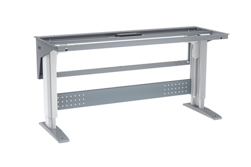 Elektrisch höhenverstellbares Tischgestell für den Einsatz im Industrie- und Logistikbereich. Das Tischgestell ist mit zwei Elektromotoren ausgestattet für eine sanfte, geräuschlose und stufenlose Höhenverstellung. Verfahrgeschwindigkeit 15 mm/s ohne Belastung. Die Höhe lässt sich einfach mit einer Tischbedieneinheit einstellen, die an einer beliebigen Stelle an der Tischplatte montiert wird. Die minimale Höhe beträgt 676 mm und die maximale Höhe 1126 mm (mit Tischplatte 700-1150 mm). Das Tischgestell besteht aus pulverlackiertem Stahl, der sowohl korrosions- als auch verschleißfest ist und eine schmutzabweisend Oberfläche hat. Netzteil 230 V/50 Hz. Ein stabiles Tischgestell mit einer Belastbarkeit von 300 kg verteiltem Gewicht.