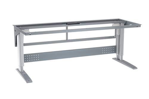Elektrisch höhenverstellbares Tischgestell für den Einsatz im Industrie- und Logistikbereich. Das Tischgestell ist mit zwei Elektromotoren ausgestattet für eine sanfte, geräuschlose und stufenlose Höhenverstellung. Verfahrgeschwindigkeit 15 mm/s ohne Belastung. Die Höhe lässt sich einfach mit einer Tischbedieneinheit einstellen, die an einer beliebigen Stelle an der Tischplatte montiert wird. Die minimale Höhe beträgt 676 mm und die maximale Höhe 1126 mm (mit Tischplatte 700-1150 mm). Das Tischgestell besteht aus pulverlackiertem Stahl, der sowohl korrosions- als auch verschleißfest ist und eine schmutzabweisend Oberfläche hat. Netzteil 230 V/50 Hz. Ein stabiles Tischgestell mit einer Belastbarkeit von 300 kg verteiltem Gewicht.