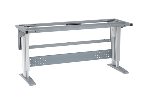 Elektrisch höhenverstellbares Tischgestell für den Einsatz im Industrie- und Logistikbereich. Das Tischgestell ist mit zwei Elektromotoren ausgestattet für eine sanfte, geräuschlose und stufenlose Höhenverstellung. Verfahrgeschwindigkeit 10 mm/s ohne Belastung. Die Höhe lässt sich einfach mit einer Tischbedieneinheit einstellen, die an einer beliebigen Stelle an der Tischplatte montiert wird. Die minimale Höhe beträgt 676 mm und die maximale Höhe 1126 mm (mit Tischplatte 700-1150 mm). Das Tischgestell besteht aus pulverlackiertem Stahl, der sowohl korrosions- als auch verschleißfest ist und eine schmutzabweisend Oberfläche hat. Netzteil 230 V/50 Hz. Ein stabiles Tischgestell mit einer Belastbarkeit von 400 kg verteiltem Gewicht.