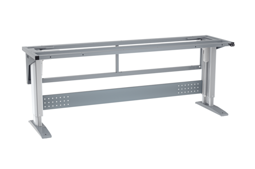 Elektrisch höhenverstellbares Tischgestell für den Einsatz im Industrie- und Logistikbereich. Das Tischgestell ist mit zwei Elektromotoren ausgestattet für eine sanfte, geräuschlose und stufenlose Höhenverstellung. Verfahrgeschwindigkeit 10 mm/s ohne Belastung. Die Höhe lässt sich einfach mit einer Tischbedieneinheit einstellen, die an einer beliebigen Stelle an der Tischplatte montiert wird. Die minimale Höhe beträgt 676 mm und die maximale Höhe 1126 mm (mit Tischplatte 700-1150 mm). Das Tischgestell besteht aus pulverlackiertem Stahl, der sowohl korrosions- als auch verschleißfest ist und eine schmutzabweisend Oberfläche hat. Netzteil 230 V/50 Hz. Ein stabiles Tischgestell mit einer Belastbarkeit von 400 kg verteiltem Gewicht.