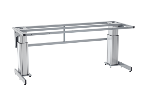 Elektrisch höhenverstellbares Tischgestell für schwerere Werkstattarbeiten. Das Tischgestell ist elektrisch verstellbar und verfügt über eine sanfte, leise und stufenlose Höhenverstellung. Verfahrgeschwindigkeit von 6,5 mm/sec unbelastet. Die Mindesthöhe ohne Tischplatte beträgt 635 mm und die maximale Höhe 1035 mm (mit Tischplatte 660-1060 mm). Das Tischgestell ist mit Stellfüßen ausgestattet, die individuell für einen stabilen Stand an unebene Industrieböden angepasst werden können. Netzteil 230 V/50 Hz. Ein stabiles Tischgestell mit einer Belastbarkeit von 600 kg verteiltem Gewicht.