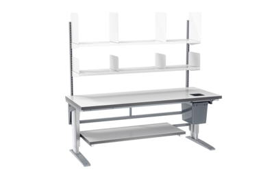 Die Packtische sind sowohl als manuelle als auch als elektrisch höhenverstellbare Varianten erhältlich. Die Tische bestehen aus widerstandsfähig lackiertem Stahl, der vor Korrosion und Verschleiß schützt mit einer schmutzabweisenden Oberfläche. Die Laminattischplatte hat eine harte und kratzfeste Oberfläche mit guter Beständigkeit gegen Flüssigkeiten und Chemikalien. Die Tischplatte ist auch in anderen Materialien oder als ESD – Ausführung erhältlich. Die Tische sind in mehreren Abmessungen und mit unterschiedlicher Belastbarkeit erhältlich. Mit unserem Konfigurator The Yelper können Sie Ihren individuellen Packtisch gestalten. Über den Konfigurator können Sie Arbeitstische, Packtische oder unsere Multiarbeitsplätze ausstatten und anpassen. Testen Sie es selbst!