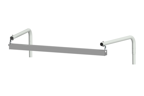 Komplettes Beleuchtungsset für Kontrollraumtisch bestehend aus zwei Rundrohrarmen und Arbeitsplatzbeleuchtung. Der Die Lampen-Armatur ist 1200 mm lang, vollständig dimmbar und kann in die gewünschte Position geneigt werden (WFI-Standardbeleuchtung 3-692).