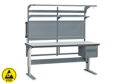 In unserem ESD-Sortiment finden Sie ESD-Arbeitstische mit spezieller Oberflächenbeschichtung, Zubehör für die Tische, ESD-Ausrüstung und Wagen mit ESD Lackierung.