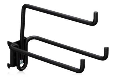 Gelenkschlüsselhalter für Lochrasterplatten zur Werkzeugaufhängung. Vorgesehen für Lochmaß 9x9 mm, Lochabstand c/c 38 mm. Passt auch auf perforierte Werkzeugtafeln mit runden Löchern mit einem Lochabstand von c/c 34–38 mm. Einzeln erhältlich.