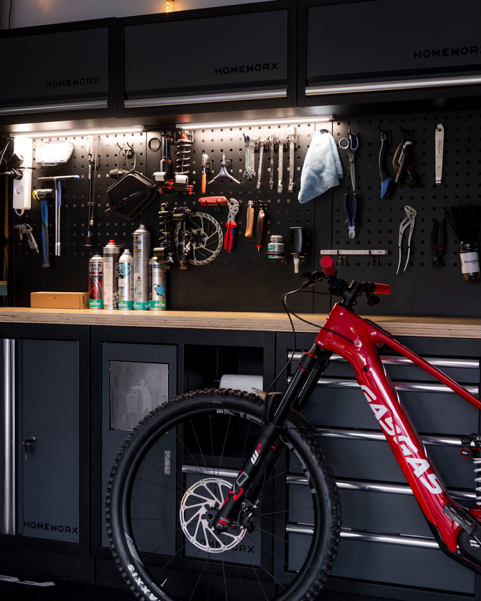Die Garageneinrichtung von Homeworx verstärkt das exklusive Gefühl in Husqvarnas einzigartiger Garage