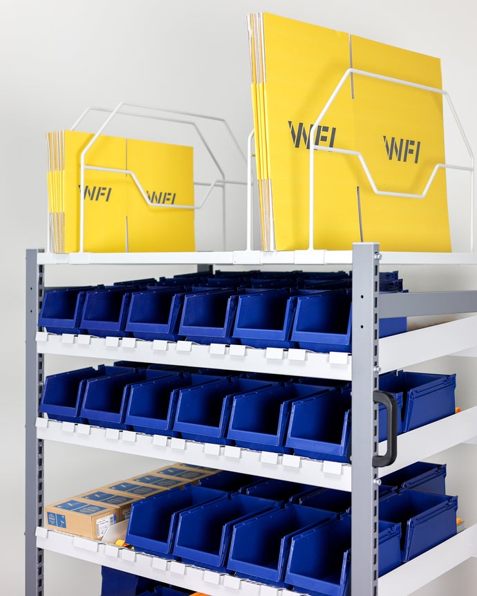 Wir erweitern unser Angebot an cleveren, flexiblen und stabilen Wagen um einen FIFO-Wagen (First-in-First-out)! Der Wagen basiert auf dem gleichen Rahmen wie unsere größeren Kartonwagen, ist jedoch anstelle von Fachböden mit einem auf Rollenleisten aufgebauten Durchlaufregalsystem ausgestattet. Nach dem FIFO-Modell befüllen Sie den Wagen einfach von hinten mit Sichtlagerkästen oder Behältern und entnehmen das Material an der Vorderseite. Dieselben Rollenleisten können auch umgedreht werden, um die leeren Boxen wieder der Rückseite zuzuführen. Perfekt für industrielle Abläufe mit vielen Kleinteilen oder Verpackungen!