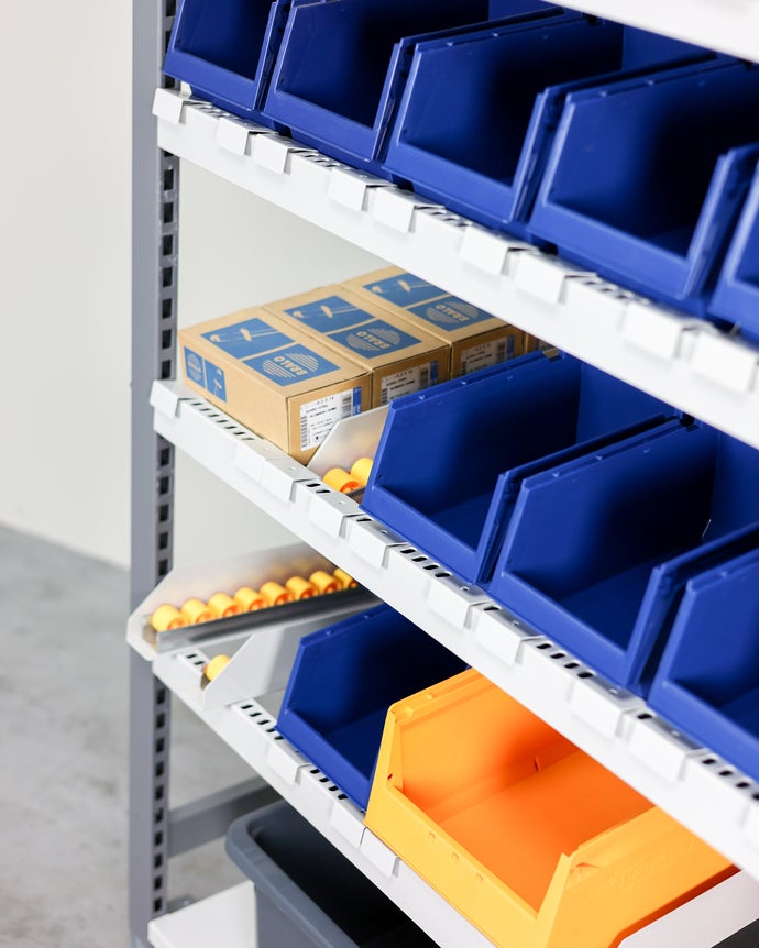 Unser neuer FIFO-Wagen basiert auf der First In, First Out-Arbeitsweise. Ein Ablauf, der sowohl Ergonomie als auch Effizienz steigert und es Branchen erleichtert, mit einem Lean-Ansatz zu arbeiten. Dieselben Rollenleisten können auch umgedreht werden, um die leeren Boxen wieder der Rückseite zuzuführen. Die Breite kann einfach über das Einhängen in die Querstreben individuell eingestellt werden.