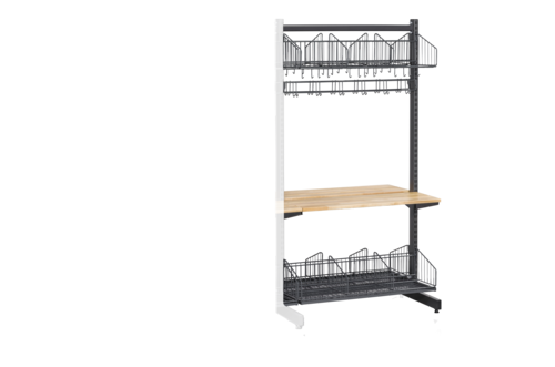 Freistehende Schuh- und Hutablage inklusive Sitzbank und Kleiderhakenleiste (Zusatzteil) zur Aufbewahrung von Kleidung und Schuhen. Das Regal lässt sich durch weitere Abschnitte zu einem Standregalsystem mit großem Stauraum erweitern. Perfekt für die Schaffung funktionaler Aufbewahrungslösungen, beispielsweise für Garderoben. Die Schuh- und Hutablagen haben jeweils drei Fächer und eine AAbtropfplatte, die den Schmutz auffängt.