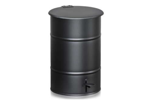 Cylindrical waste container with foot pedal for opening the lid. Opening and closing the lid with the aid of the foot pedal gives the barrel hygienic properties and fits extra well at the preschool, hospital or sports facility. Suitable as waste bin, container for contaminated and dirty clothes or for flammable waste in industry and electronics industry EPA areas. Made of hot-dip galvanized sheet metal. Black lacquered.