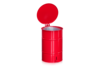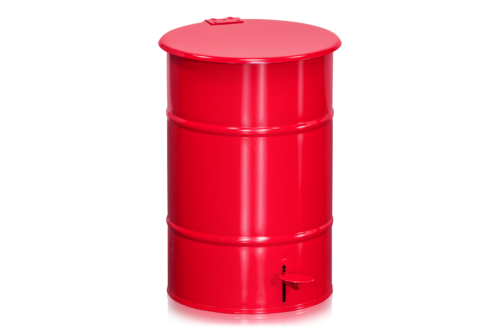 Cylindrical waste container with foot pedal for opening the lid. Opening and closing the lid with the aid of the foot pedal gives the barrel hygienic properties and fits extra well at the preschool, hospital or sports facility. Suitable as waste bin, container for contaminated and dirty clothes or for flammable waste in industry and electronics industry EPA areas. Made of hot-dip galvanized sheet metal. Red lacquered.
