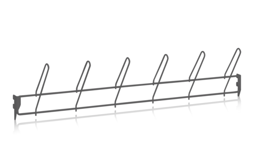Boot rack that fits our wall-mounted and freestanding rail systems. Easy to adjust in height. The boot rack has six holders for three pairs of shoes or boots.