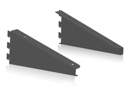Shelf brackets that fits our wall-mounted and freestanding rail systems. Easy to install and adjust in height. These brackets are designed to support shelves with a depth of 300 mm. Sold in pairs.