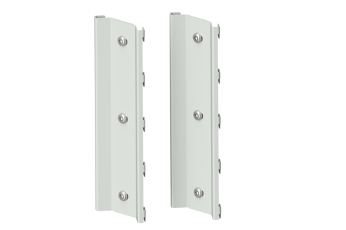 Complete set of corner fittings for building 90° corners with partition walls. Easy to assemble. To build a T-section, two sets are required. Lacquered sheet metal.