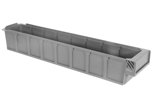 Versatile plastic bin for varied storage, suitable for warehouses, industries, or workshops. Made of polypropylene that is resistant to chemicals and oils, which is especially important in demanding environments. The bin is intended to be placed on shelves, tables, or trolleys. The bin can also be divided in up to 8 smaller compartments with dividers that is available as accessories (7 dividers).