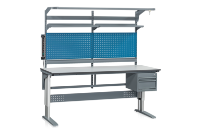 För såväl industri- som logistikmiljö har vi mängder av manuella arbetsbord och höj- och sänkbara arbetsbord, både enkla bord och varianter som är helt kompletta i sitt utförande. Vårt utbud sträcker sig från enklare modeller med en lastkapacitet på 90 kg till tyngre varianter med en lastkapacitet på 600 kg. Arbetsborden kan kompletteras med påbyggnad med allt från perforerade paneler, ledbara armar, backlister med plastbackar, hyllplan och krokar av olika slag till hurtsar och annan förvaring under bordet. Vilka möjligheter de olika arbetsborden har till påbyggnad och montering av hurtsar ser ni i vår konfigurator The Yelper när ni bygger er arbetsplatslösning. Utöver arbetsbord kan ni även upptäcka vårt utbud av lyftpelare, tillbehör, multiarbetsplatser, bordsskivor och bordsstativ. Här finns allt ni behöver för att skapa en kvalitativ bas och utgångspunkt för er framtida arbetsstation.