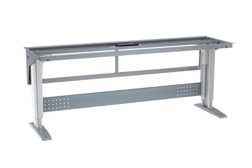Motoriserat bordsstativ avsett för både industri- och logistikarbete. Bordsstativet är elektriskt justerbart med dubbla elmotorer som skapar en jämn, tystgående och steglös höjdjustering. Lyfthastighet på 15 mm/sek obelastat. Höjden justeras enkelt med en liten bordskontroll som monteras på valfri sida av bordsskivan, lägsta höjd är 676 mm och högsta höjd 1126 mm (med bordsskiva 700-1150 mm). Bordsstativet är tillverkat i pulverlackerat stål som är motståndskraftigt mot både korrosion och slitage, samtidigt som ytan blir smutsavvisande. Ansluts till 230 V/50 Hz. Ett riktigt stabilt bord med en lastkapacitet på 300 kg fördelad vikt.