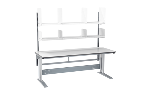 Arbetsbordet levereras som standard med en bordsskiva i laminat som har en hård och reptålig yta, med god beständighet mot vätskor och kemikalier. Enkel att torka av och hålla ren. Passar därmed de flesta industri- och logistikmiljöer. Laminatskivan är 24 mm och har en kantlist i 2 mm grå ABS.