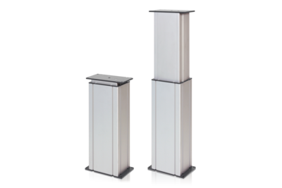 Samtliga lyftpelare i vårt sortiment är stabila, glidlagrade, tystgående och underhållsfria. Teleskopet är tillverkat av natureloxerat aluminium som är fullt återvinningsbart och dess stora glidlagringar skapar maximal stabilitet. Våra lyftpelare är konstruerade för att ta upp snedbelastningar och finns både som 2-delade och 3-delade varianter, alla har elektrisk drivning förutom en variant som har vev. Standardvarianterna finns i MC 2, MC 10, MC 12, MC 14 och MC 21, och har en stor spännvidd på både lyftkraft (Nm) och slaglängd. Lastkapaciteten går hela vägen upp till 10000N (1000 kg). Styrenheterna är förprogrammerade för direkt användning och enkel plug and play.