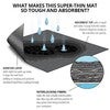 Skyddsmatta med självhäftande baksida för arbetsbord. Enkel att montera på många olika typer av släta ytor. Mattan är väldigt praktisk om man söker en slitstark, ljuddämpande yta som dessutom lämpar sig mot repkänsliga ytor. Den är även absorberande mot olika typer av vätskor som vatten, fett och oljor. Det absorberande lagret är tillverkat av 100% återvunnen polyester. Temperaturområde: 13° - 49°C.