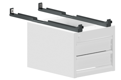 Upphängningsbeslag som behövs vid montering av hurts och för underhylla på bord W300.