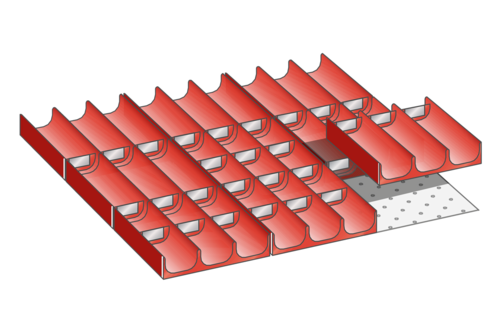 Lådinredning som passar till premiumhurtsar från LISTA. Används för att skapa struktur och en bättre överblick på innehållet i lådan.