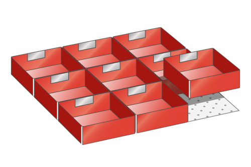 Lådinredning som passar till premiumhurtsar från LISTA. Används för att skapa struktur och en bättre överblick på innehållet i lådan.