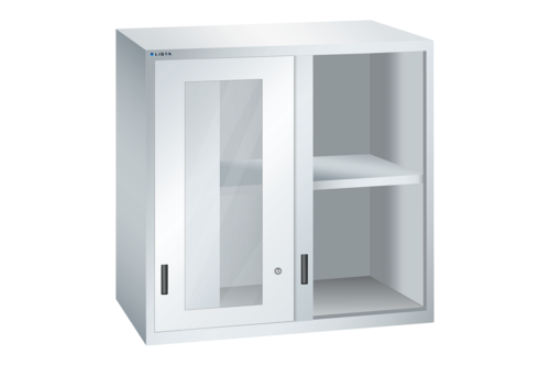 Överskåp som passar till verktygshurtsar från LISTA. Skåpet toppmonteras på verktygshurtsen och är kompatibelt med alla LISTA verktygshurtsar 54x36. Tillverkat i en kraftig plåtkonstruktion för användning i krävande miljöer, levereras inklusive skjutdörr med UV-resistent akrylskiva och galvaniserat hyllplan med fyra hyllkonsoler. Skjutdörren manövreras tyst och smidigt med hjälp av kullager i rullskena och hyllplanet har en lastkapacitet på 60 kg, samt är fullt justerbart i höjd med 25 mm intervaller. Överskåpet är utrustat med nyckellås och fästelement för montering på verktygshurts.