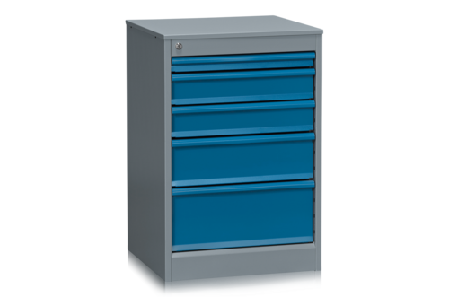 Verkstadshurts 600 HD med 5 stycken lådor: 1x50 mm, 2x100 mm, 1x150 mm och 1x200 mm. Invändigt lådmått: bredd 450 mm och djup 450 mm. Monteras direkt i bordsskivor, 40 mm.