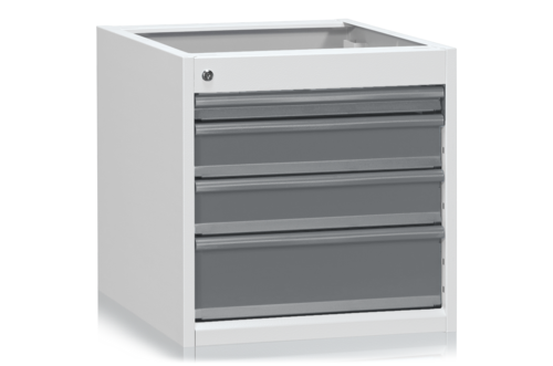 Samtliga våra verkstadshurtsar har kullagerexpansioner med 100% utdragbarhet, lådor med integrerat handtag i bockad stålplåt och stomme med centrallås som låser alla lådor. Det är även möjligt att montera lådspärr med individuell låsning på varje låda vid behov. Lastkapacitet 45 kg fördelad vikt vid montering i bordsskiva.