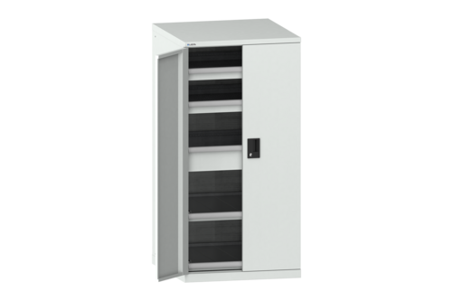 Premiumhurts från LISTA. Verktygshurtsen är tillverkad i en kraftig plåtkonstruktion av allra högsta klass för användning i krävande miljöer. Hurtsen har dörrar, två utdragbara hyllor och tre utdragbara lådor. Verktygshurtsen har centrallås med tillhörande nyckel. Både stommen och dörrarna är lackerade i ljusgrå RAL 7035, hyllplan är lackerade i grå NCS S 4502-B.