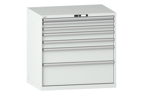 Premiumhurts från LISTA. Verktygshurtsen är tillverkad i en kraftig plåtkonstruktion av allra högsta klass för användning i krävande miljöer och har en total lastkapacitet på upp till 4 ton. Utöver att den robusta konstruktionen är mycket stabil och säker tack vare dess anti-tilt funktion, är hurtsen även välskyddad och slittålig mot yttre påverkan. Samtliga lådor på hurtsen är fullt utdragbara samt utrustade med anti-tilt funktion som gör att det endast går att ha en låda ute i taget. Verktygshurtsen har centrallås med tillhörande nyckel. Både stommen och lådorna är lackerade i ljusgrå RAL 7035.