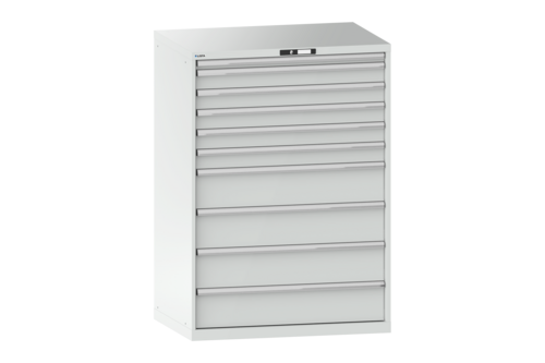 Premiumhurts från LISTA. Verktygshurtsen är tillverkad i en kraftig plåtkonstruktion av allra högsta klass för användning i krävande miljöer och har en total lastkapacitet på upp till 4 ton. Utöver att den robusta konstruktionen är mycket stabil och säker tack vare dess anti-tilt funktion, är hurtsen även välskyddad och slittålig mot yttre påverkan. Samtliga lådor på hurtsen är fullt utdragbara samt utrustade med anti-tilt funktion som gör att det endast går att ha en låda ute i taget. Verktygshurtsen har centrallås med tillhörande nyckel. Både stommen och lådorna är lackerade i ljusgrå RAL 7035.
