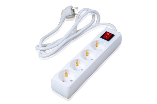 4-vägs grenuttag med upplyst strömbrytare. Snedställda uttag som ger plats för fler transformatorer och 1,4 meter lång förlängningsladd.