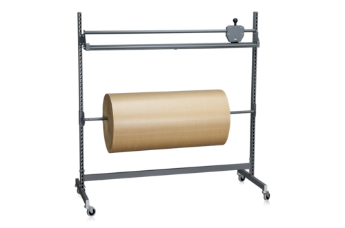Praktiskt och stabilt rullställ med skäraggregat, perfekt för alla typer av arbetsplatser. Rullstället har fyra 75 mm hjul, varav två med broms. Passar bra för mängder av olika packmaterial, allt från wellpapp och kraftpapper till bubbelfolie och foam, maxbredd på rullen är 1500 mm. Vagnen är 1630 mm hög inklusive hjul och väger endast 16 kg. Maxbelastning 50 kg.