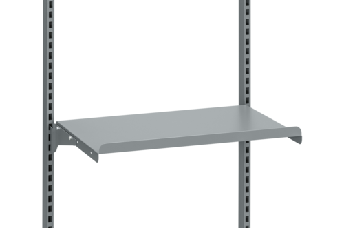 Hyllplan med raskant för verktyg och plastbackar. Inkluderar 2 stycken konsoler. Monteras på perforerad pelare, rak eller vinklad.