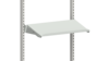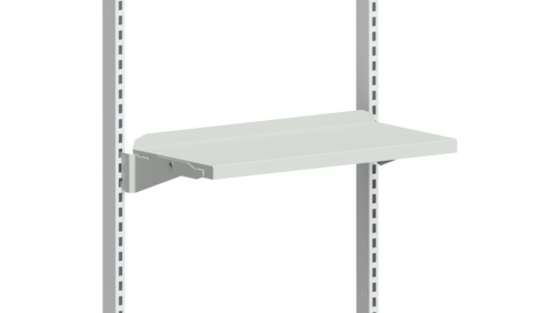 Hyllplan med raskant, som passar för verktyg och plastbackar. Hyllplanet monteras rakt eller vinklat på perforerade pelare. Hyllplanet är vändbart så att raskanten kan vara antingen utåt eller mot pelarna.